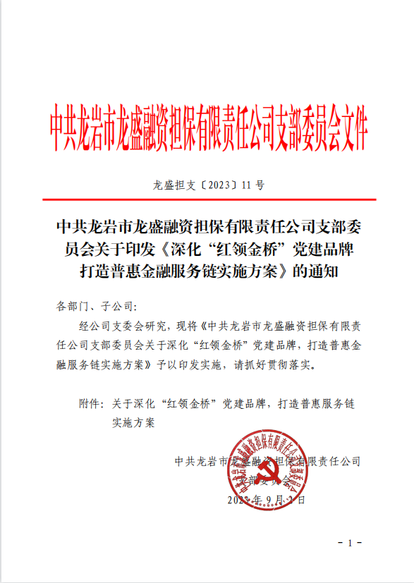 近年來,龍盛擔(dān)保公司黨支部以習(xí)近平新時代中國特色社會主義思想為指導(dǎo),以“四抓手”持續(xù)深化“紅領(lǐng)金橋”黨建品牌建設(shè),助推黨建與業(yè)務(wù)相融并促,匯聚起服務(wù)實體經(jīng)濟(jì)發(fā)展的強(qiáng)大合力。公司黨支部先后被集團(tuán)黨委、市國資委黨委評為“先進(jìn)基層黨組織”,公司連續(xù)兩年被市委、市政府評為“服務(wù)實體經(jīng)濟(jì)十佳金融機(jī)構(gòu)”,今年獲省屬企業(yè)投資入股5000萬元,成功引入國家融資擔(dān)保基金落地龍巖。
